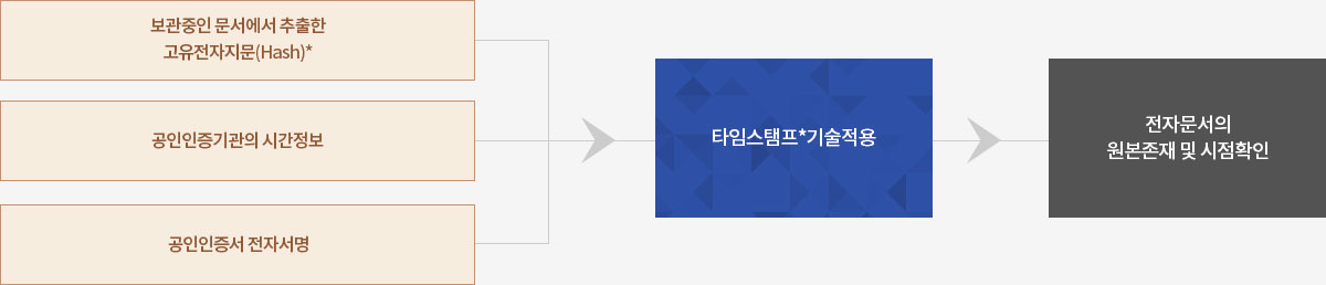 ※ 타임스탬프 : 특정시점에 데이터가 존재했다는 사실과 그 시점 이후에 데이터가 변경되지 않았음을 증명하는 전자적 기술